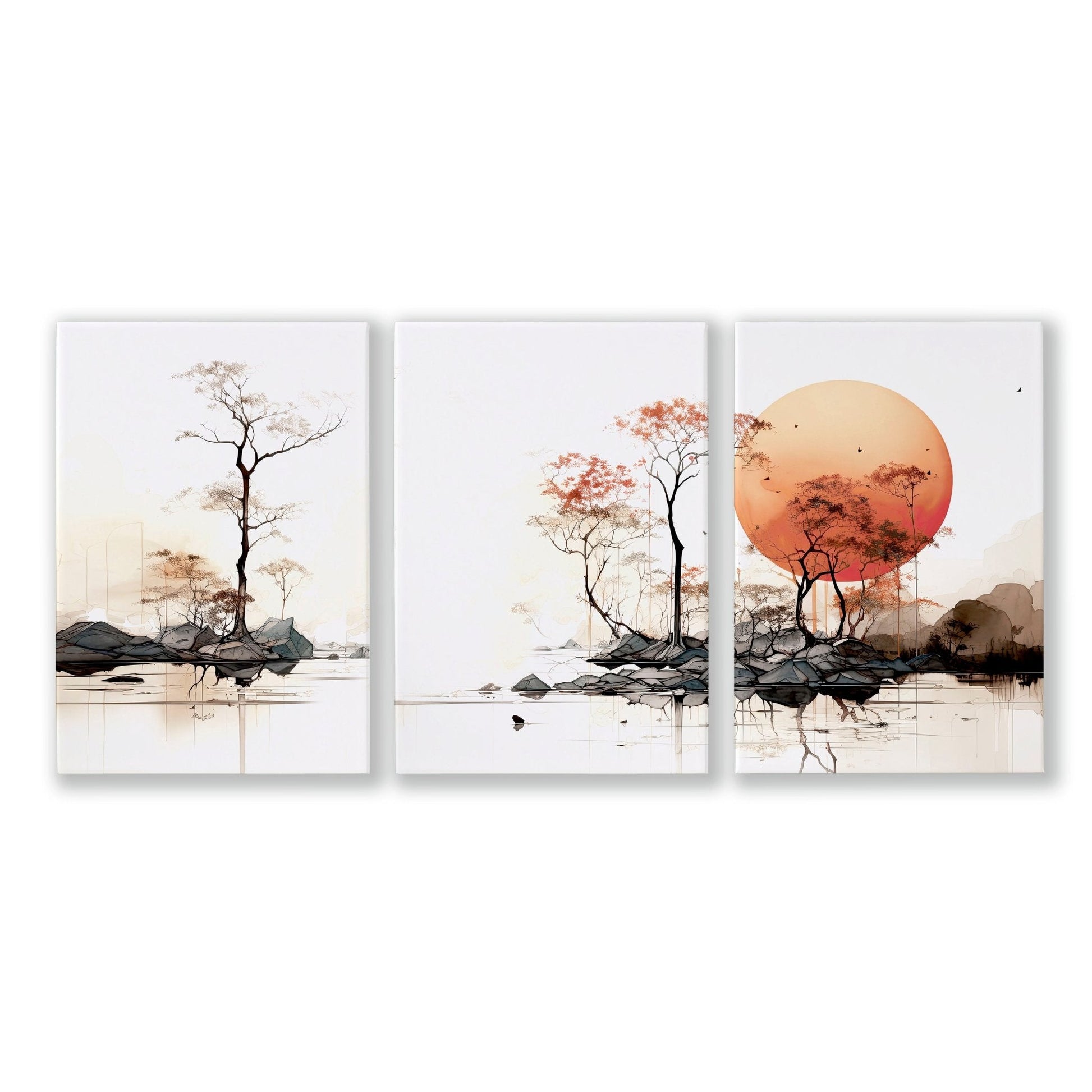 Imagine the sun-kissed hues radiating from your walls, casting a gentle glow that infuses your space with warmth and a sense of calm. These three stunning pieces not only highlight the beauty of Asian design but also enrich your environment with a story of culture and artistry. Instantly enhance your decor with these striking prints that promise to captivate and enchant.