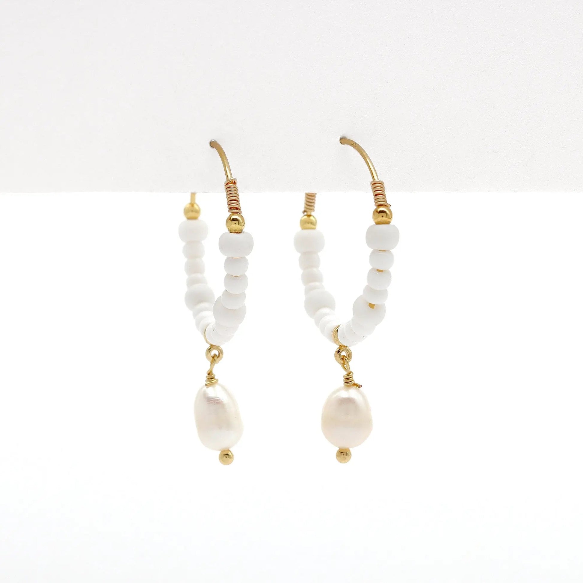 Meet your new go-to hoops: the Gegambar Wire Hoop Earrings! Designed by Giada Legati for Pineapple Island, these medium-sized hoops feature pretty white bead details with a pearl drop charm at the centre. They close securely with a hook, so you can wear them confidently anywhere—whether you're out on an adventure or enjoying a night out. Perfect for all seasons, these earrings will elevate any outfit! Plus, they make the perfect gift for her.