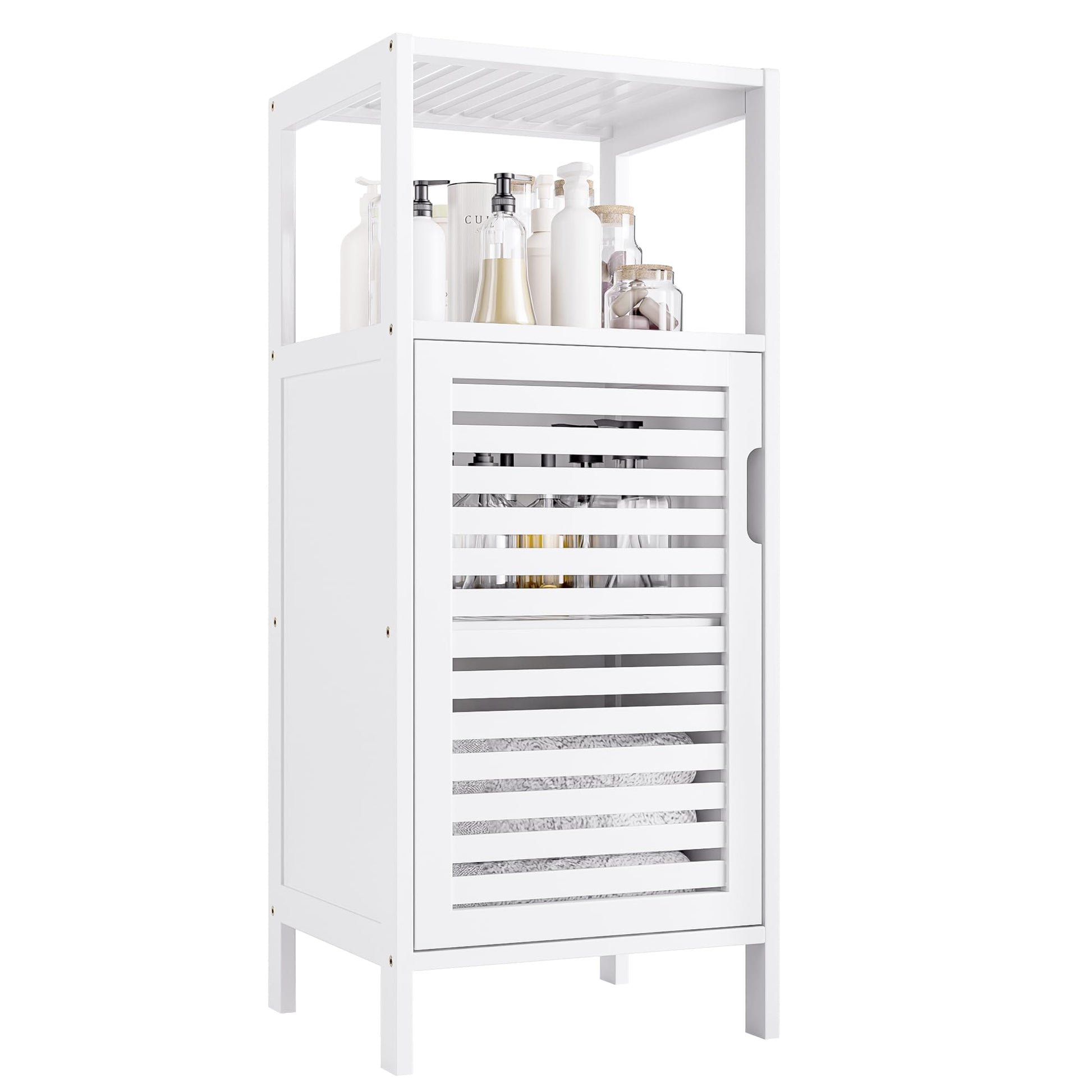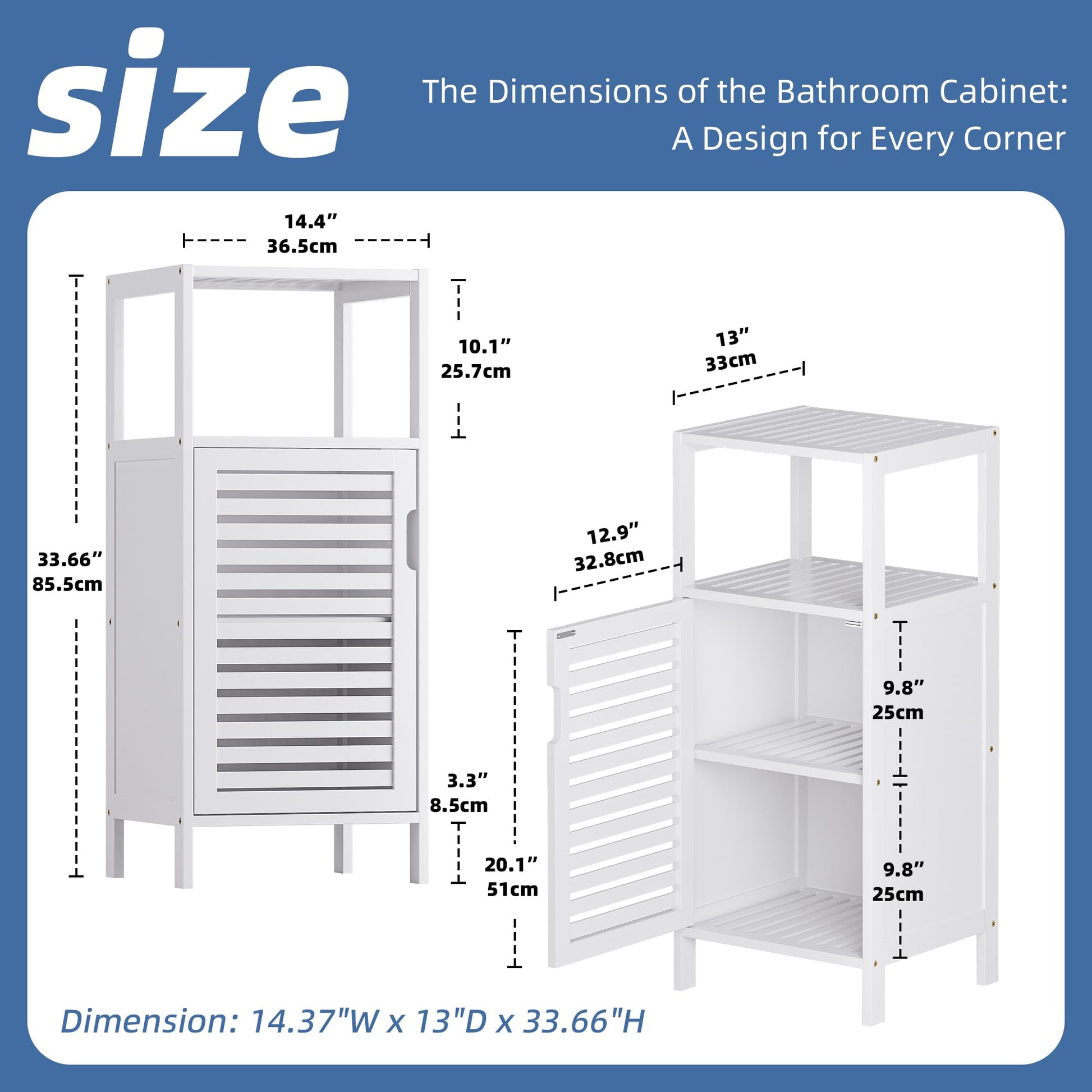HITNET Bamboo Bathroom Storage Cabinet, 4 Tier Small White Floor Cabinet, Freestanding Narrow Slim Storage Organizer with Single DoorShare